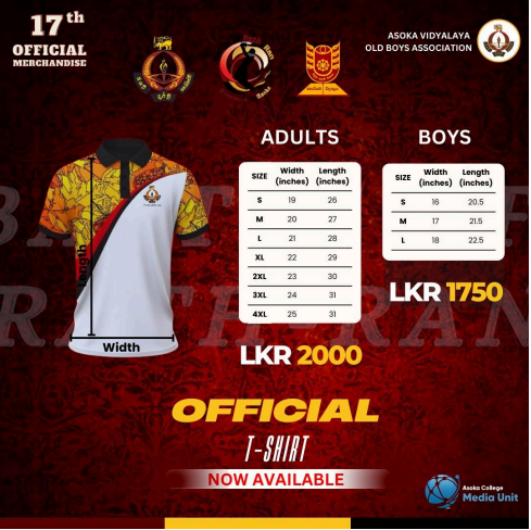 Get your hands on the much awaited official T shirt for the Battle of Rath-Ran 2025. *T-shirt price Mens – LKR 2000/- (For Old Boys) T-shirt price Boys – LKR